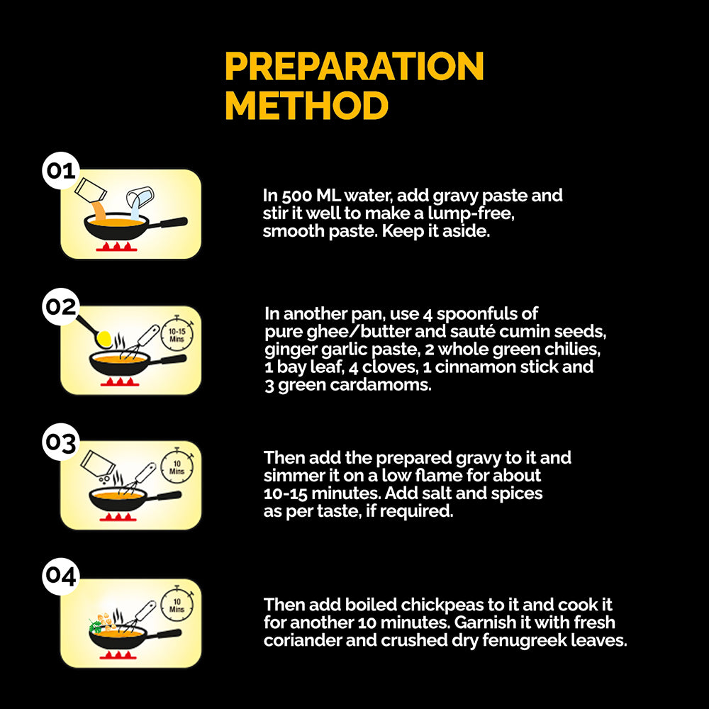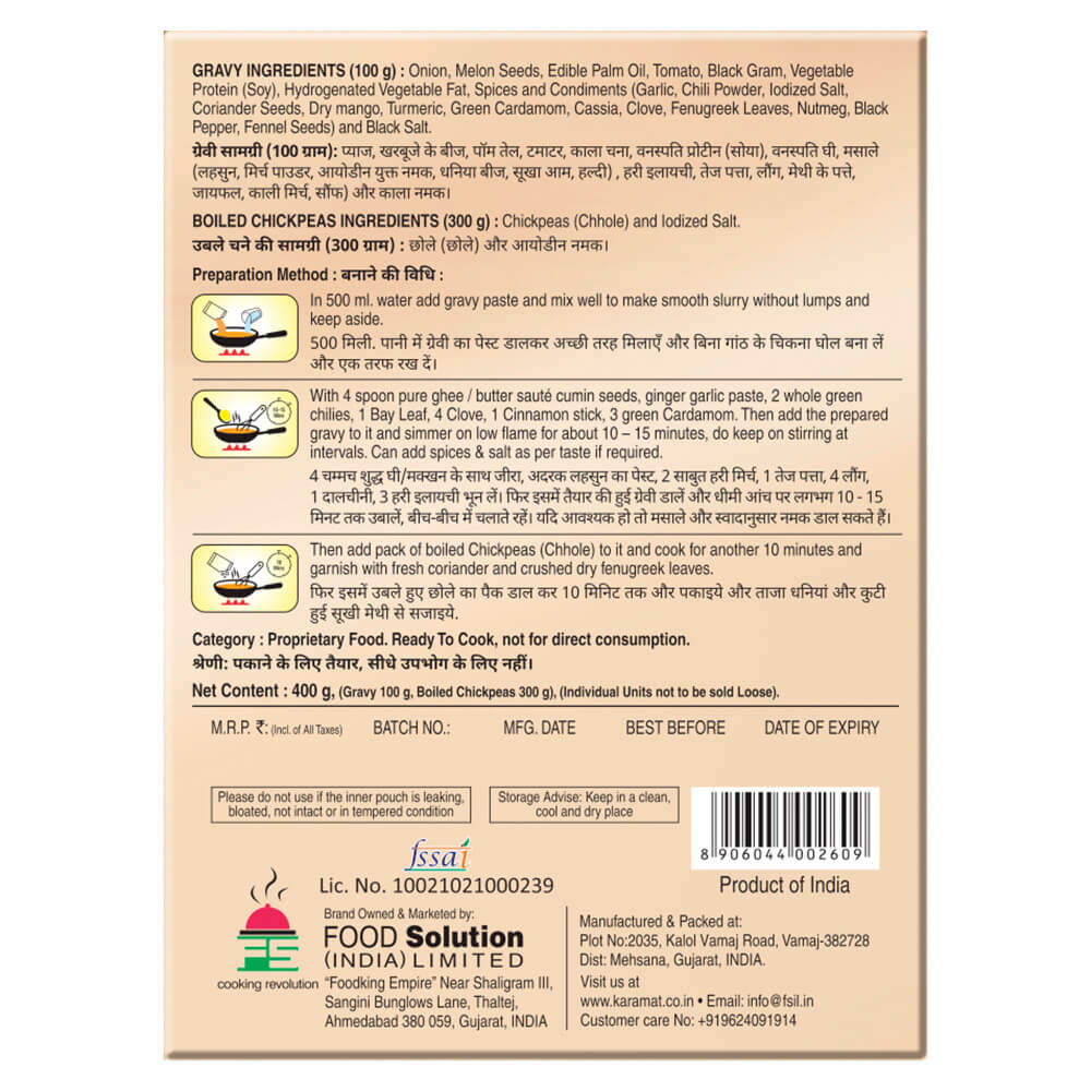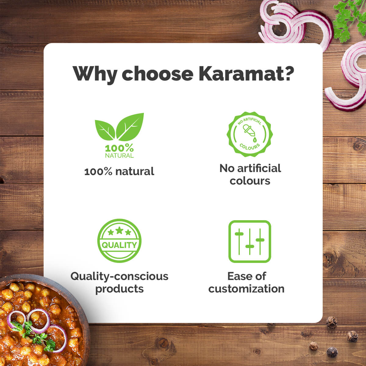 Loved by everyone across the nation and overseas, Chhole Masala Mix from Karamat offers the authentic flavours of Punjabi cuisine. Packed with the freshness of spices and rich condiments, the gravy paste is loaded with a zing of flavours and strong aroma. Add the Chhole packet to it and you have your whole dish ready. Serve it hot with a side of lemons and green chillies and see your guests relish it, till the very last morsel.