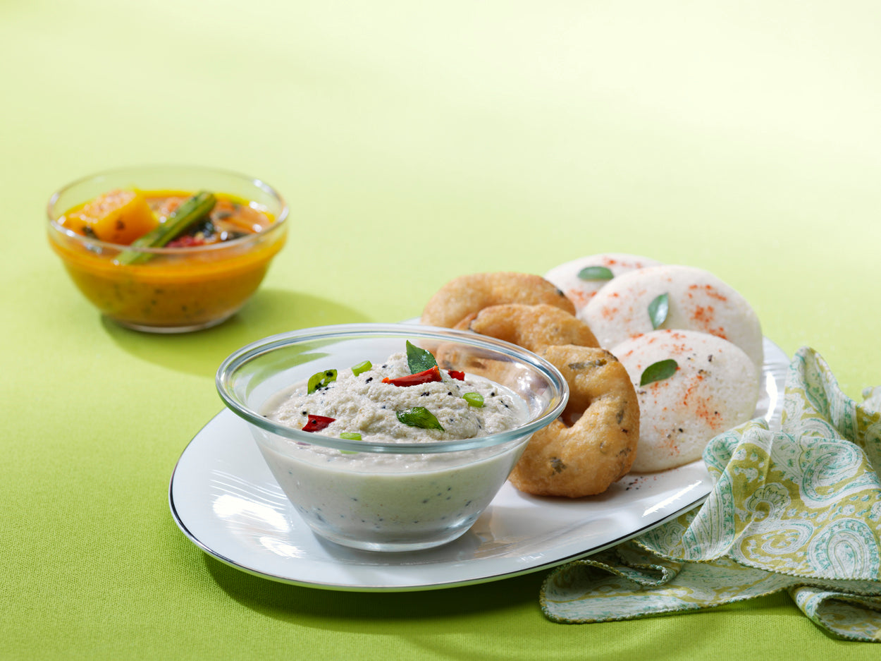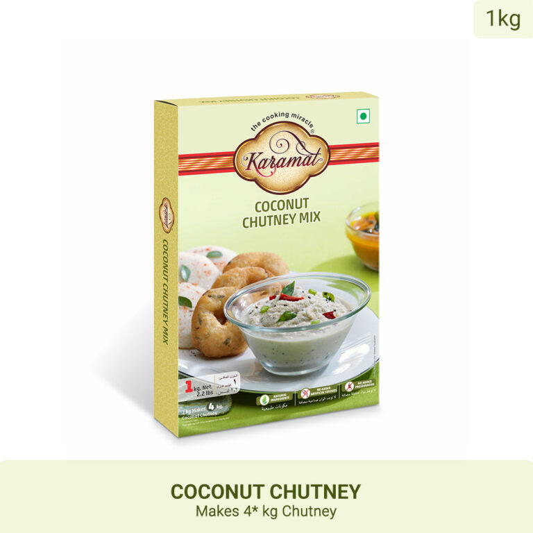 A heavenly blend of fresh grated coconut, aromatic herbs, and spices. Our chutney is the perfect accompaniment to any South Indian meal, whether it’s dosa, idli, or vada. Karamat’s cocnut chutney will enhance the overall dining experience and take your taste buds on a culinary journey to the tropics.