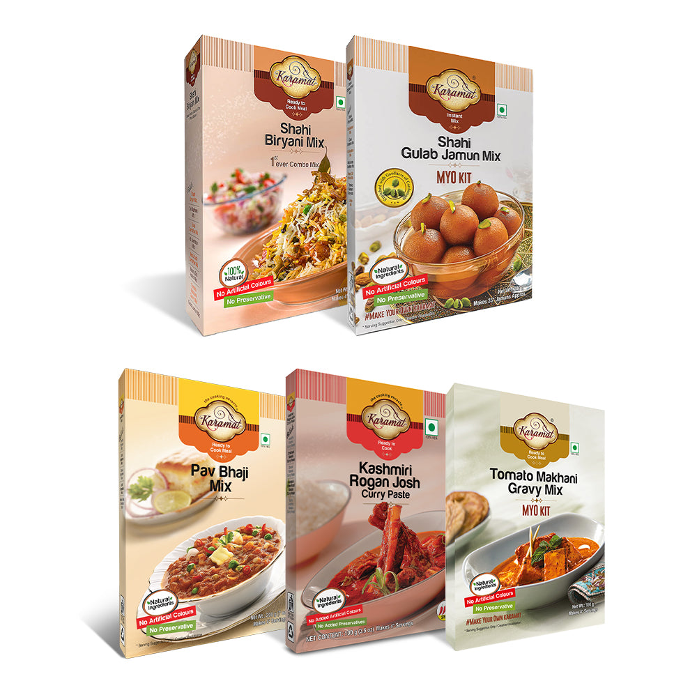 Hosting a dinner party just got a whole lot easier! Our Dinner Party Combo has everything you need to impress your guests without stress. From the comforting warmth of Pav Bhaji Mix to the regal flavors of Shahi Biryani and the sweet indulgence of Gulab Jamun, this combo is your go-to for effortless entertaining. Whether it’s the rich Kashmiri Rogan Josh or the creamy Tomato Makhani Gravy, this collection turns last-minute dinner hassles into a flavorful feast. Get ready to serve up a party in every bite!