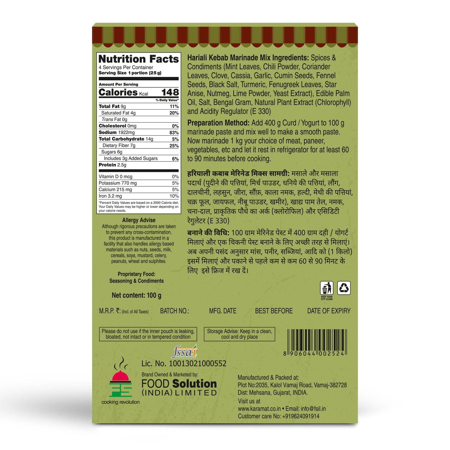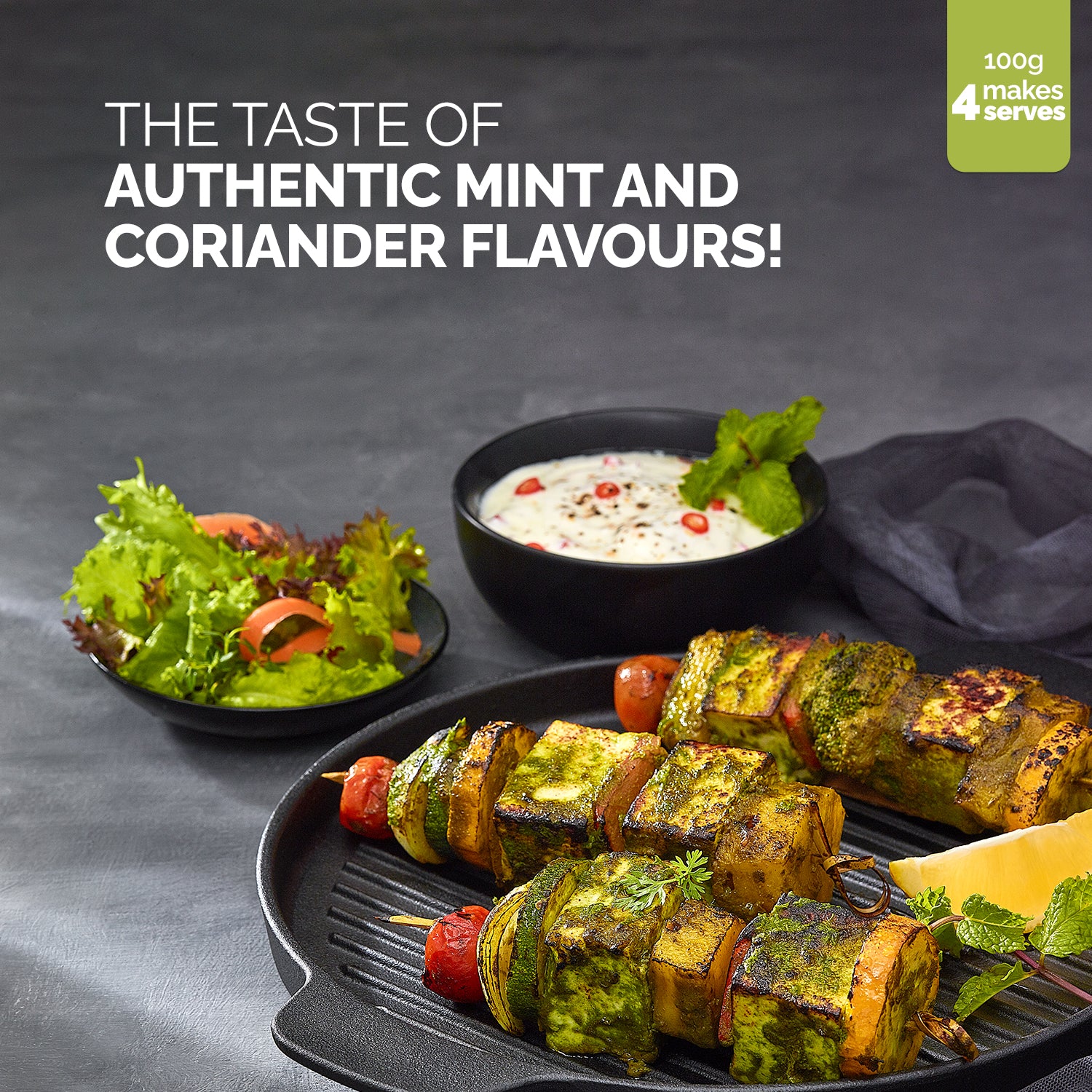 Karamat’s Hariyali Kebab Marinade Meal Kit (MYO) comes with the aromatic flavours of fresh mint, coriander and various other spices. It lends an authentic taste to paneer or meat dishes. It’s easy to make and the end result is a heavenly experience for anyone who has it. The Mint Chutney is also included so that you have the perfect accompaniment with your juicy dish.