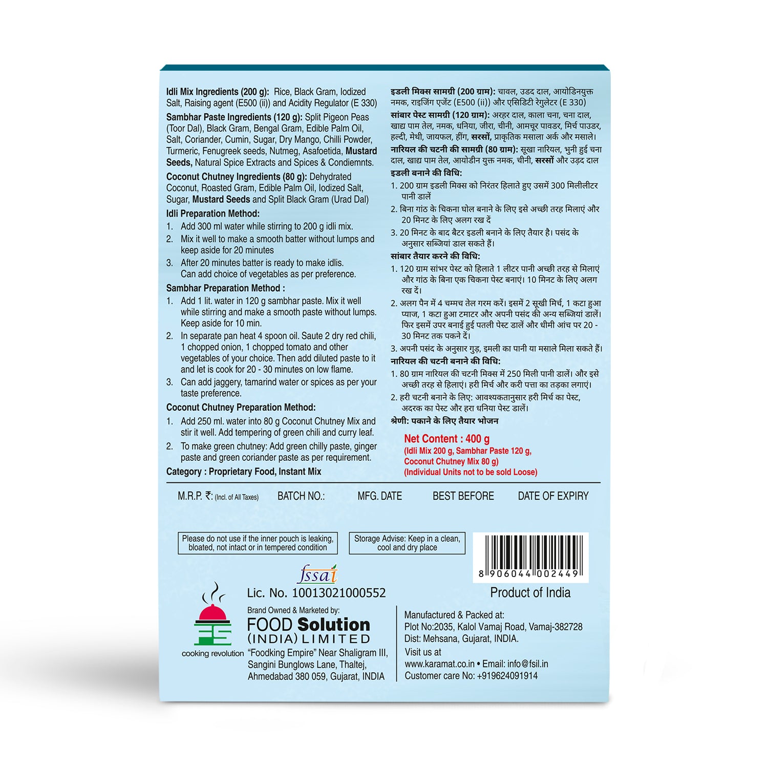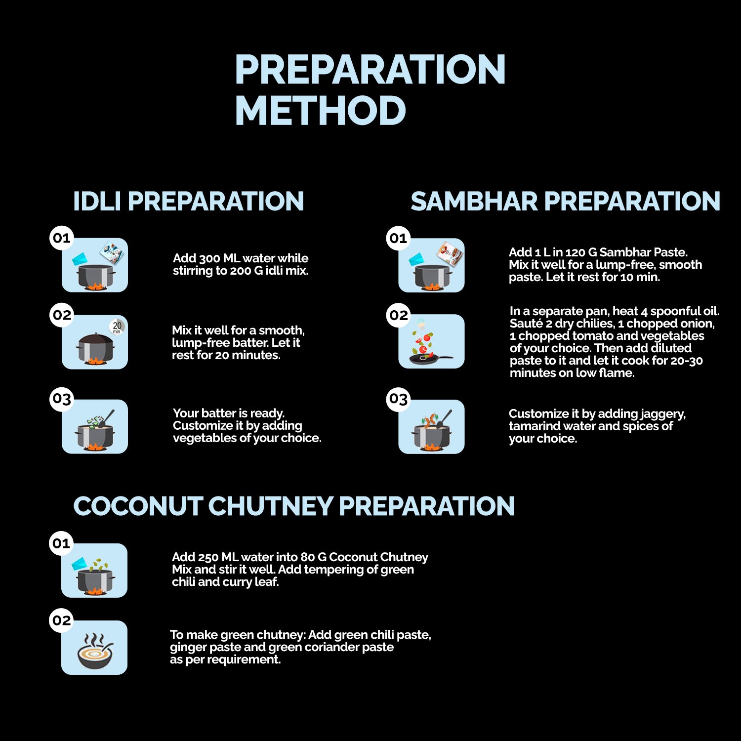 With Karamat Idli Sambhar Mix, batter preparation time reduces to minutes and so you can create the perfect Idlis with the right consistency. It also comes with a Sambhar & Coconut Chutney Mix so that you have a perfect lip-smacking breakfast.