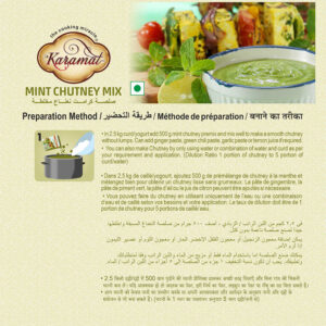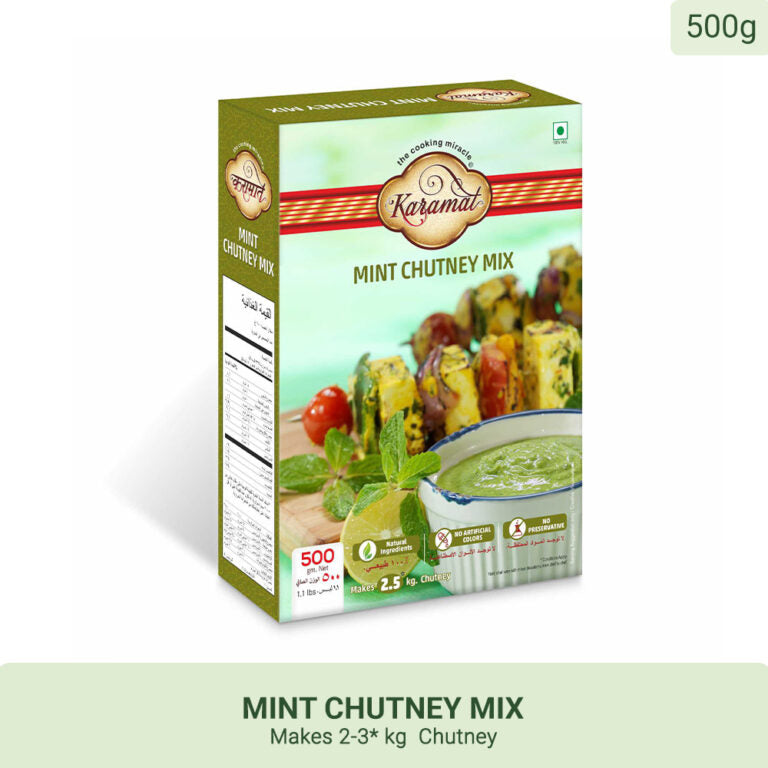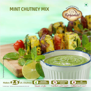 Karamat’s versatile Mint Chutney Mix is a blessing in disguise! Be it Chicken Tikka or Paneer Tikka, it goes well with any kind of starter or snack. Made with superior grade spices and fresh mint, this side dip is sure to tantalize your taste buds.