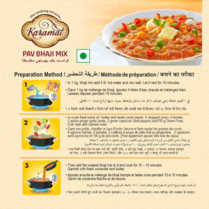 Karamat Pavbhaji Mix takes you onto an indulgence of fine blends of spice and flavour. Prepare your all-time favourite recipe in no time and free yourself from the long process of cooking. Add your choice of veggies and serve this lip-smacking dish alongside Pav, some freshly cut onions and a glass of buttermilk.