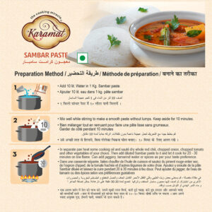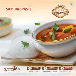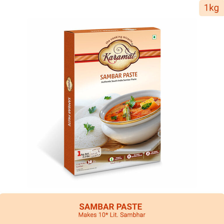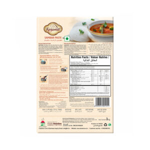 Our easy-to-use paste eliminates the need for time-consuming preparation and allows you to prepare delicious Sambar in no time. Just add your choice of veggies and lentils, and serve it with some steaming hot rice or crispy dosas for a satisfying meal. With its delicious taste and convenient preparation, our Sambar Paste is a delight for anyone who loves the flavors of South India.