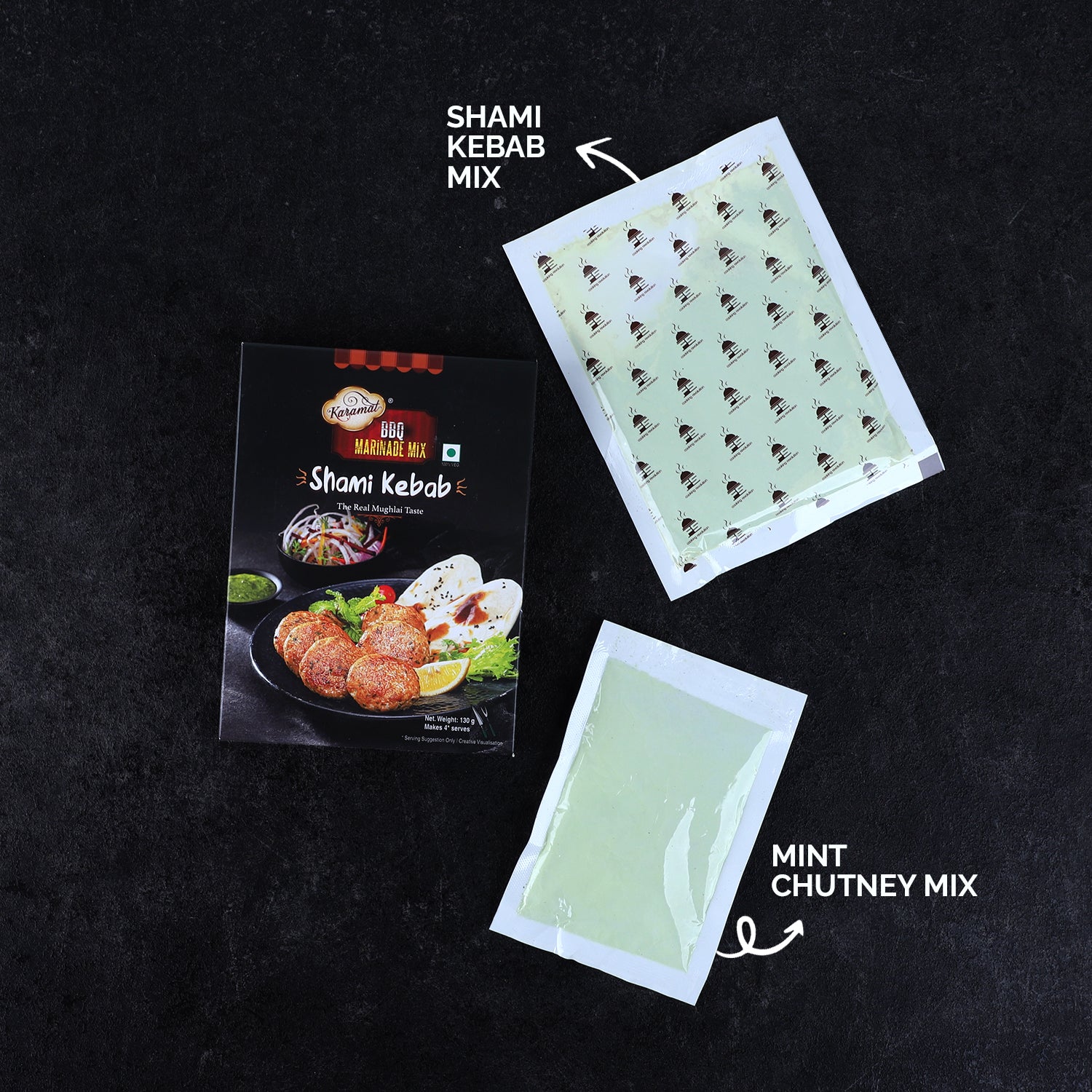 Tasty Kebabs can be had any season and if they can be made at home, then nothing like it. Karamat’s Shami Kebab Meal Kit (MYO) offers a mélange of flavours to prepare beautiful tasting minced meat or boiled lentil dishes. The marinade mix is made with fresh, dried and roasted spices to lend that authentic flavour to your preparations. It also comes with Mint Chutney for that perfect accompaniment.