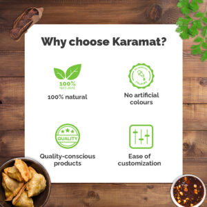 Complete your snack platter with Karamat’s Tamrind Chutney Mix. With natural ingredients and utmost hygiene, our mix features the right balance of sugar, tamarind, and dry mango powder, making it the perfect accompaniment for any crunchy snack.