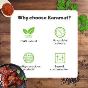 Loaded with fulfilling Indian flavours, Karamat’s Tandoori Marinade Mix is the perfect complement to grilled meat, seafood and vegetables. Prepare the iconic tandoor dishes with this mix made from premium quality spices and condiments and your guests are sure to drool!