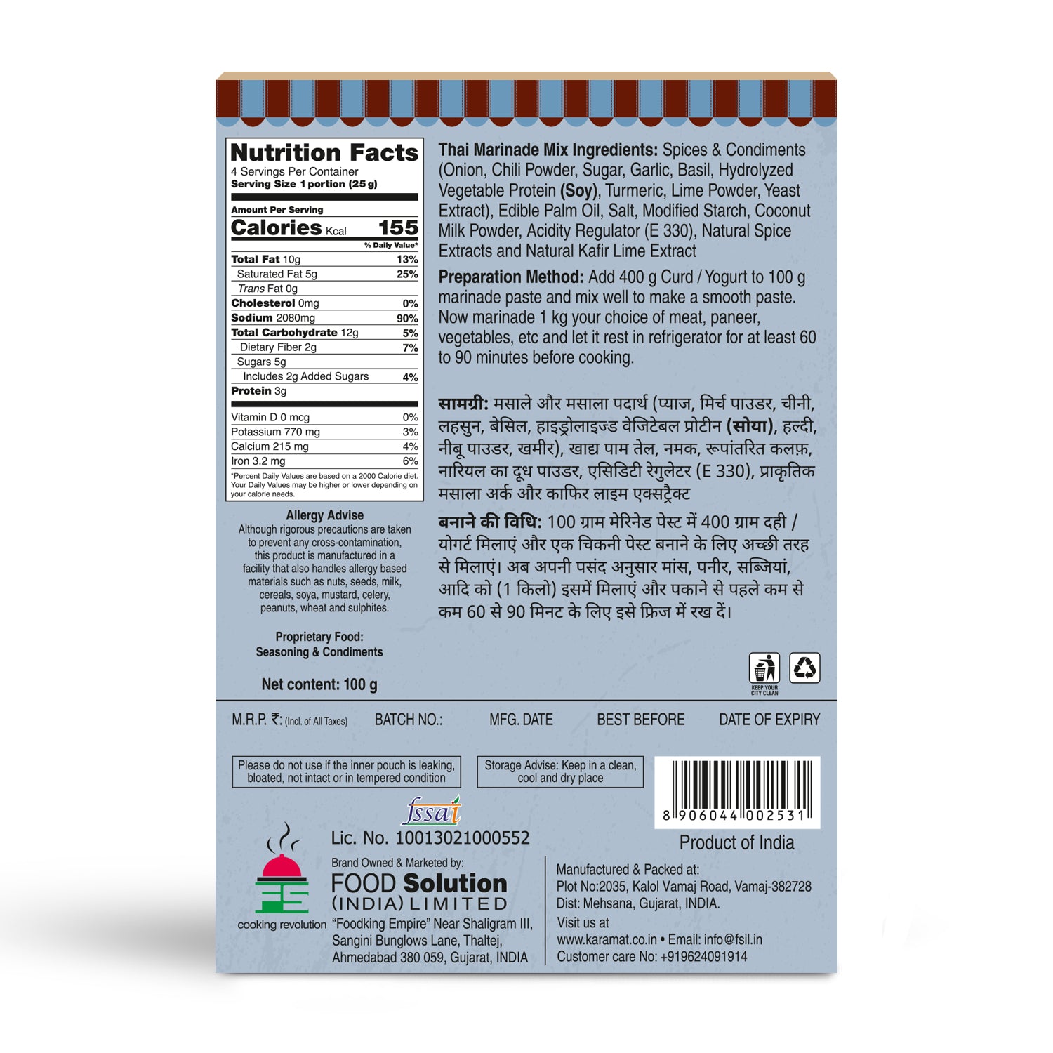 Transform your regular chicken into a wonderful-tasting entrée with Karamat’s Thai Marinade Mix. Skillfully prepared with the piquant flavours of kafir lime, lemon grass, galangal and fresh coconut, this mix is used to make dishes that taste simply divine.